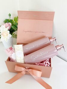This gift box is personalised with inside message and choose your own word to have on the pump bottle.